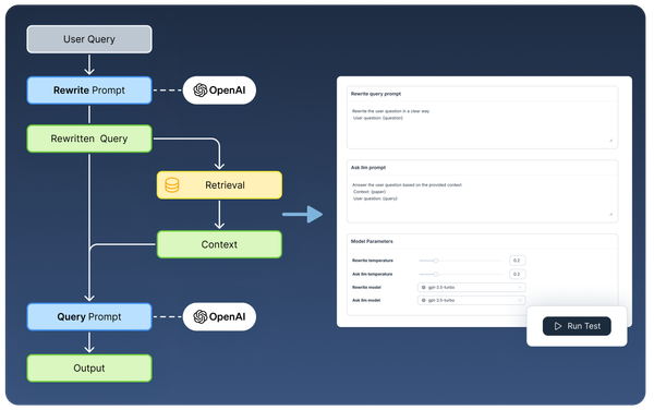 Custom workflows let you build a playground for any custom LLM workflow, such as RAG or agents. This playground replicates the logic of your real application, enabling subject matter experts to easily iterate on its parameters and evaluate it end-to-end from the web UI